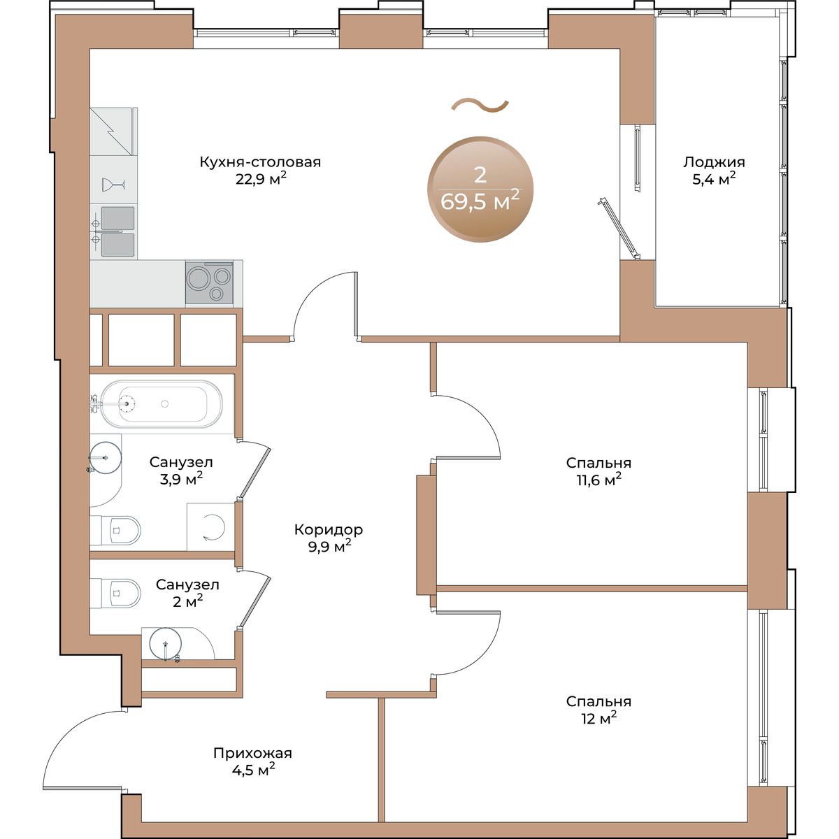 69,5 м